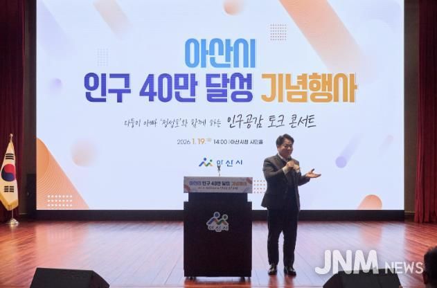 제이앤엠뉴스 | 아산시는 지난 19일 아산시청 시민홀에서 인구 40만을 넘어 50만 자족도시로 나아가기 위한 '아산시 인구 40만 달성 기념행사'를 성황리에 마쳤다.