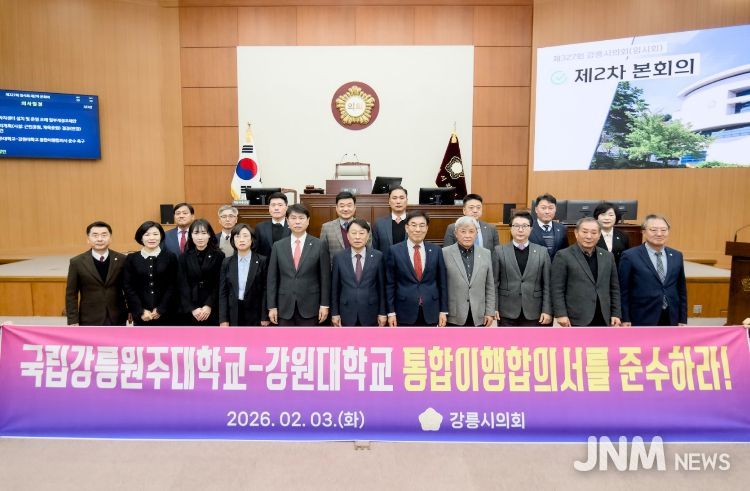 제이앤엠뉴스 | 강릉시의회는 3일 제327회 강릉시의회(임시회) 제2차 본회의에서 조대영 의원의 대표발의로 ‘국립강릉원주대학교-강원대학교 통합이행합의서 준수 촉구 성명서’를 발의했다.