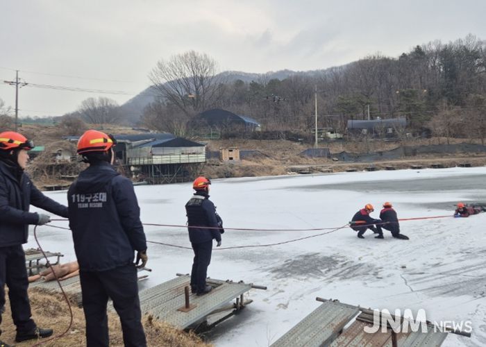 제이앤엠뉴스 | 광명소방서는 4일 오전 노온사저수지일원에서 겨울철 수난사고에 대비해 구조대원의 현장 대응역량 강화를 위한 동계 수난사고 특별구조훈련을 실시했다.