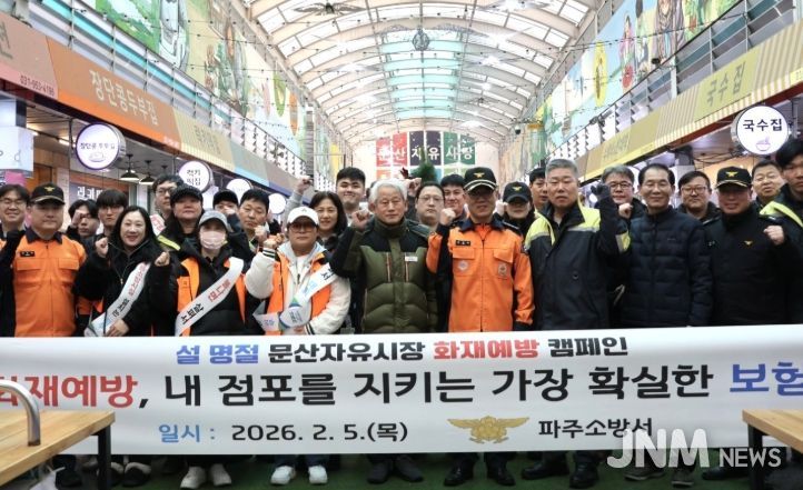 제이앤엠뉴스 | 파주소방서는 2월 5일 설 명절을 앞두고 파주시 문산자유시장에서 화재예방 캠페인과 상인 간담회, 합동점검을 실시하며 지역 전통시장 화재예방에 총력을 기울였다.