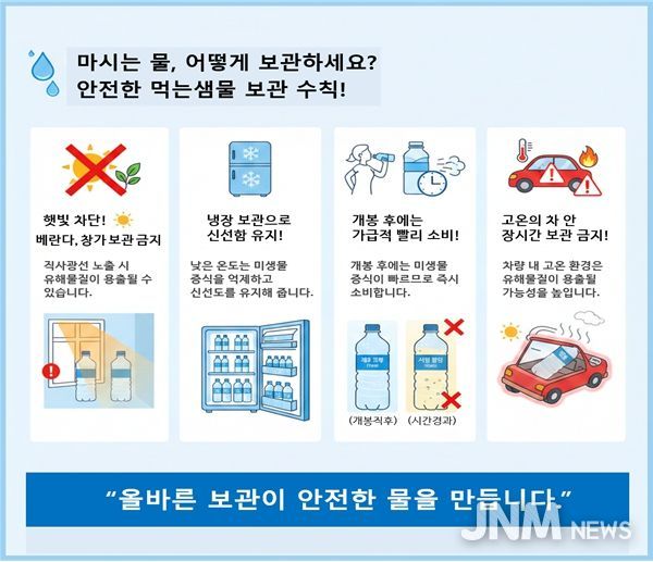 제이앤엠뉴스 | 전북특별자치도 보건환경연구원이 도내 유통 중인 먹는샘물을 대상으로 보관 방법에 따른 유해물질 용출 특성을 분석한 결과, 보관 환경에 따라 일부 성분 변화가 나타날 수 있는 것으로 확인됐다고 6일 밝혔다.