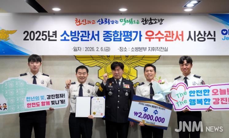 제이앤엠뉴스 | 강진소방서는 2월 6일 오전 10시, 소방본부 지휘작전실에서 열린 2025년 수행 소방관서 종합평가 시상식에서 우수 관서로 선정되는 영예를 안았다.