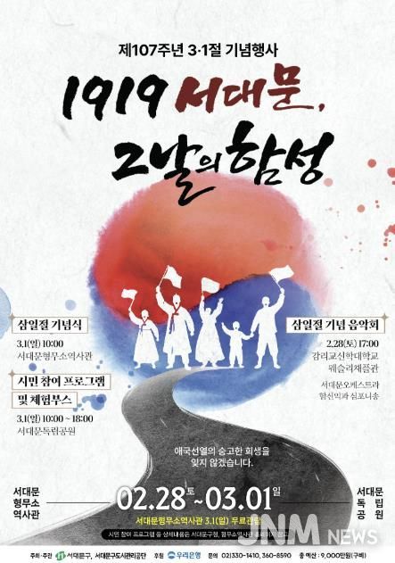 제이앤엠뉴스 | 서대문구가 제107주년 삼일절인 3월 1일 서대문독립공원과 서대문형무소역사관 일대에서 ‘1919 서대문, 그날의 함성’을 개최한다. 삼일절 하루 전인 이달 28일에는 감리교신학대학교 웨슬리채플관에서 삼일절 기념음악회도 열린다.