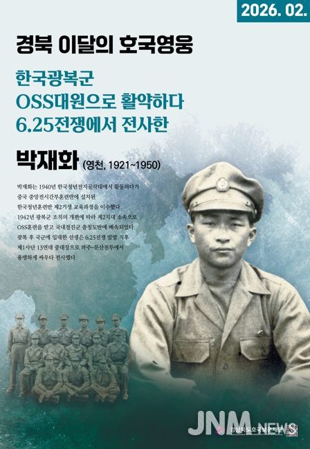 제이앤엠뉴스 | 경상북도호국보훈재단은 2026년 ‘경북 이달의 호국영웅’ 2월의 주인공으로 영천 출신 박재화 선생(朴載華, 1921~1950)을 선정했다고 밝혔다.