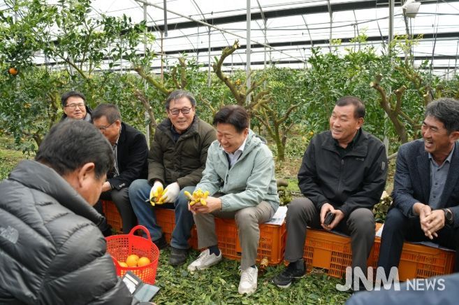 제이앤엠뉴스 | 제주 만감류 가격이 2월 들어 뚜렷한 회복세를 보이는 가운데, 오영훈 제주도지사가 11일 한라봉 농가를 찾아 현장 목소리를 청취했다.