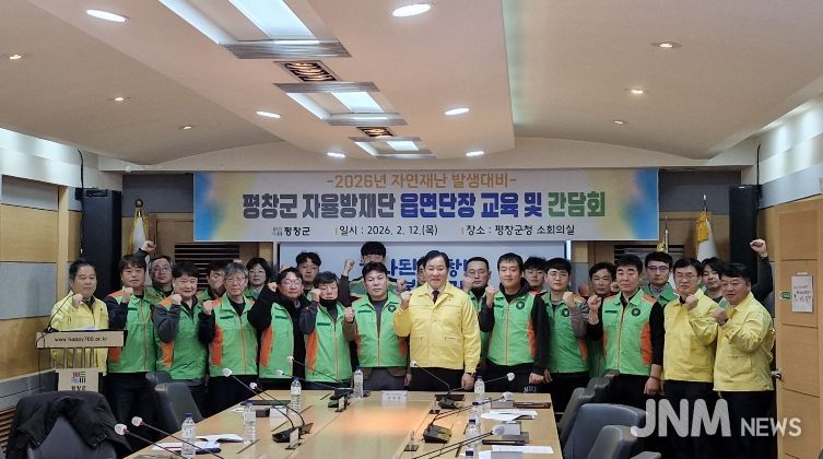 제이앤엠뉴스 | 평창군은 지난 12일 군청 소회의실에서 권혁영 도시안전국장을 비롯한 읍면 자율방재단 대표 등 20여 명이 참석한 가운데 ‘2026년 읍면 자율방재단장 교육 및 간담회’를 개최했다.