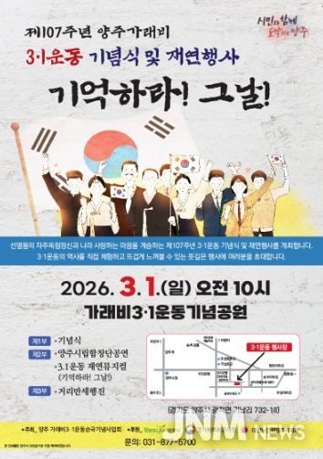 양주시 관계자는 “제107주년을 맞아 열리는 이번 기념 행사가 선열들의 희생과 애국정신을 다시 한번 마음에 새기는 계기가 되길 바란다”며 “많은 시민들이 함께해 자랑스러운 우리 고장의 역사를 기억하고, 그 정신을 미래 세대에 이어가는 소중한 시간이 되길 기대한다”고 전했다.