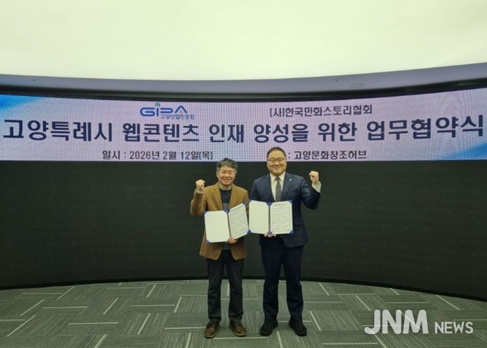 제이앤엠뉴스 | 고양산업진흥원이 지난 12일 고양문화창조허브에서 한국만화스토리협회와 웹툰·웹소설 분야 전문 인재 양성을 위한 업무협약을 체결했다.