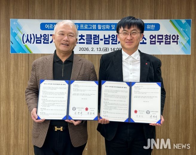 제이앤엠뉴스 | 남원시보건소는 2월 13일 (사)남원거점스포츠클럽과 함께 지역 어르신들의 스포츠 참여 기회를 확대하고 통합적인 건강관리 서비스를 제공하기 위한 업무협약(MOU)를 체결했다.