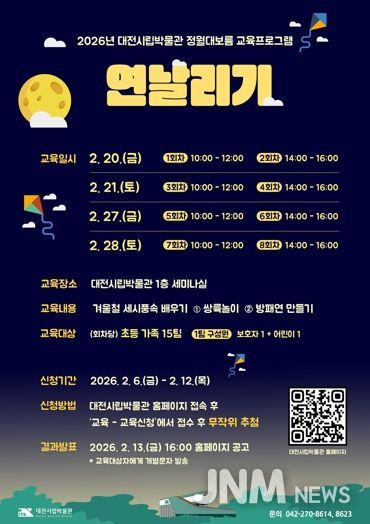 제이앤엠뉴스 | 대전시립박물관에서는 정월대보름을 맞이하여 오는 20일부터 28일까지 전통 세시풍속을 체험할 수 있는 ‘연날리기 및 쌍륙놀이 체험 행사’를 운영한다.