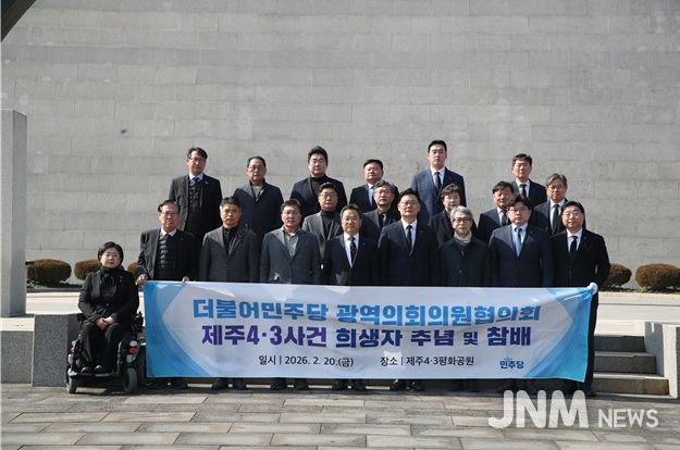 제이앤엠뉴스 | 제주특별자치도의회 더불어민주당 교섭단체(원내대표 송창권)는 2월 20일 오전 11시 제주4·3 평화공원에서 더불어민주당 전국광역의회의원협의회와 함께 제주4·3 희생자 추모 및 참배를 진행했다.