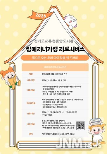 제이앤엠뉴스 | 경기도교육청중앙도서관(관장 이승호)이 장애자녀가정을 대상으로 새롭게 마련한‘장애자녀가정 자료서비스’를 운영한다.