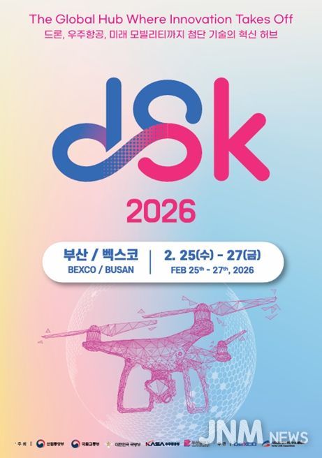 제이앤엠뉴스 | 부산시는 오는 2월 25일부터 27일까지 3일간 벡스코에서 아시아 최대 드론 전시회 및 콘퍼런스인 'DSK(드론쇼코리아) 2026'를 개최한다고 밝혔다.