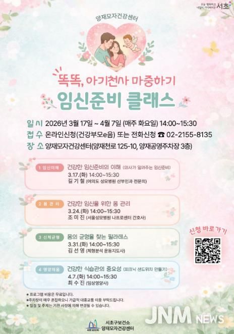 제이앤엠뉴스 | 서울 서초구가 2026년을 맞아 양재모자건강센터의 모자건강 프로그램을 ‘온가족 활력 프로그램’으로 새롭게 단장하여 확대 운영한다고 밝혔다.