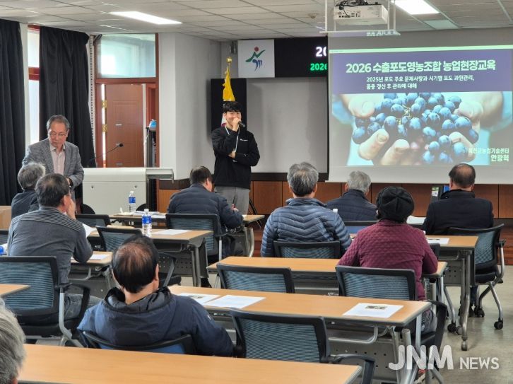 교육에서는 생육 단계별 과원관리 요령과 안정적인 수형 형성을 위한 관리 방법 등을 중심으로 설명해, 수출용 포도의 품질 향상과 생산성 제고에 실질적인 도움을 제공했다.