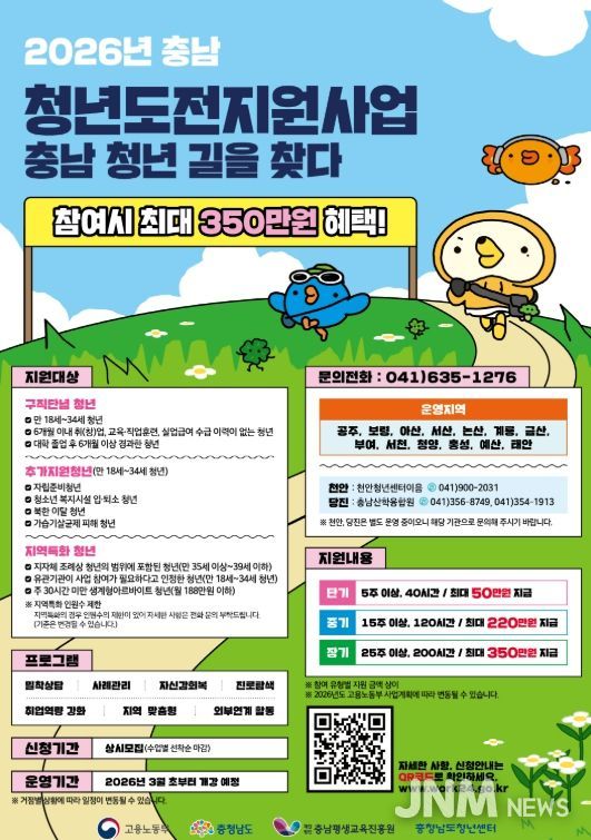 제이앤엠뉴스 | 공주시는 충남청년센터와 협력해 구직에 어려움을 겪는 지역 청년을 대상으로 ‘2026 청년도전지원사업’ 참여자를 상시 모집한다고 밝혔다.