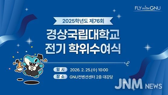 제이앤엠뉴스 | 경상국립대학교는 2월 25일 오전 10시 가좌캠퍼스 GNU컨벤션센터에서 ‘2025학년도 전기(제76회) 학위수여식’을 열고 박사·석사·학사 학위 취득자들의 새로운 출발을 축하한다.