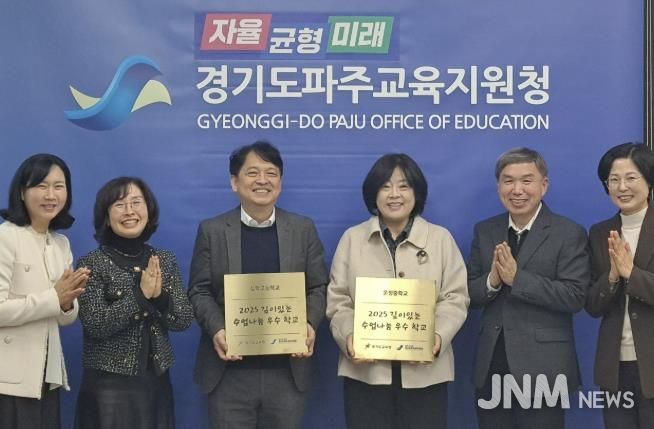 파주교육지원청은 2025학년도의 수업을 되돌아보면서 2026년 2월 20일(금), 깊이 있는 수업 나눔 실천 우수학교를 선정하여 기념 현판 수여식을 진행했다. 수여식에는 2025학년도에 일상적 수업 연구 및 지역 대표 공개 수업 등으로 깊이 있는 수업 확산에 노력한 ‘운정중학교, 심학고등학교’ 2개 학교 학교장이 참석했다. 참석자는 “2026년에도 학생 주도성을 바탕으로 한 깊이 있는 수업 실천을 위해 더욱 노력하겠다.”라고 소감을 밝혔다.