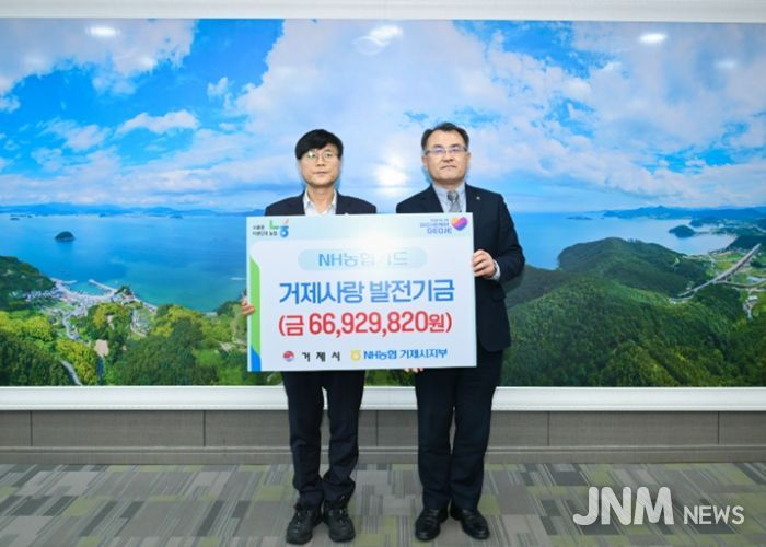 제이앤엠뉴스 | 거제시는 2월 23일 NH농협은행 거제시지부로부터 2025년도 NH농협카드 이용에 따른 제휴카드 적립 기금 66,929,820원을 전달받았다고 밝혔다.