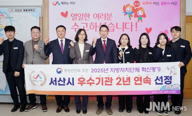 제이앤엠뉴스 | 충남 서산시는 행정안전부가 주관하는 ‘2025년 지방자치단체 혁신평가’에서 2년 연속 우수기관에 선정됐다고 밝혔다.