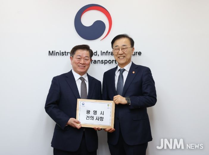 박승원 광명시장은 3일 서울 정동 국토발전전시관에서 김윤덕 국토교통부 장관을 만나 임병택 시흥시장, 박준희 관악구청장, 유성훈 금천구청장과 함께 신천~하안~신림선의 제5차 국가철도망 구축계획 반영 및 조기 추진을 촉구하는 공동 건의문을 전달했다. 네 지자체는 수도권 서남부 지역의 교통난 해소를 위해 해당 노선의 신속한 추진이 필요하다는 입장을 밝혔다.