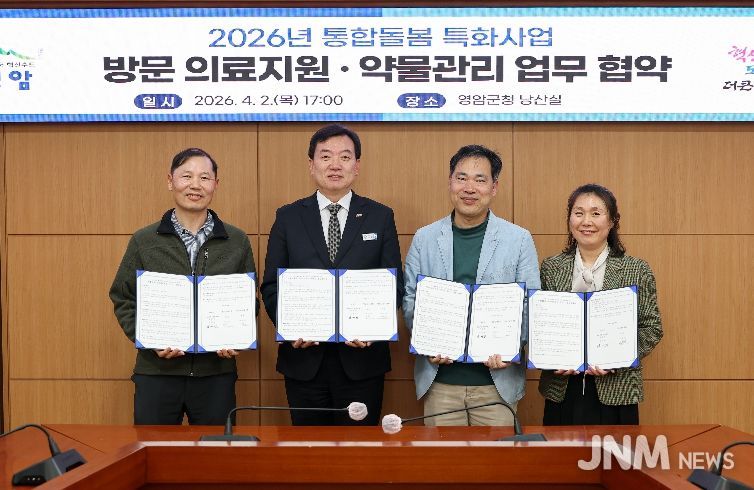 영암군은 지난 2일 군청 낭산실에서 영암군의사회, 영암군한의사회, 영암군약사회와 함께 '통합돌봄 방문의료지원 및 방문약물관리 사업' 추진을 위한 업무협약을 체결했다. 이번 협약은 3월 27일부터 시행된 '의료·요양 등 지역 돌봄의 통합지원에 관한 법률'에 따라, 어르신들이 익숙한 생활환경에서 건강관리를 받을 수 있도록 지역 맞춤형 서비스를 제공하는 데 목적이 있다.