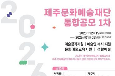 제주문화예술재단, 2026년 지원사업 1차 통합공모 실시