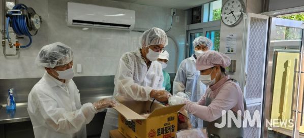 제이앤엠뉴스 | 충청북도청주교육지원청은 하절기 식중독 사고 예방 및 안전하고 질 높은 학교급식 제공을 위해 7월 10일 봉명중학교 식생활관을 방문하여 검수 과정 등 급식 현장을 살펴보았다.