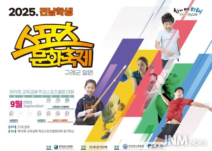 제이앤엠뉴스 | 전라남도교육청이 주최하는 2025 전남 학생 스포츠 문화축제가 오는 9월 25일부터 9월 27일까지 구례군 일원에서 개최된다.