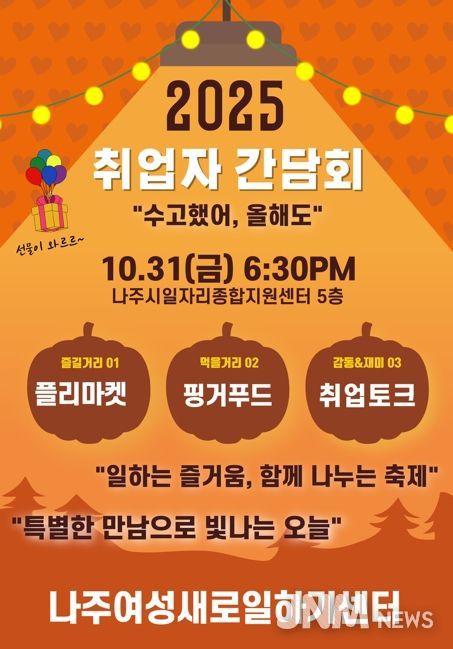 제이앤엠뉴스 | 나주여성새로일하기센터(센터장 최진아)는 오는 10월 31일 나주시 일자리종합지원센터에서 지역 여성 취업자 50여 명이 참여하는 취업자 간담회를 개최한다.