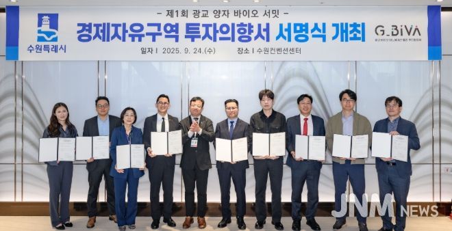 제이앤엠뉴스 | 제1회 광교 양자 바이오 서밋에 참가한 9개 첨단바이오 기업이 경제자유구역 투자의향서에 서명했다.