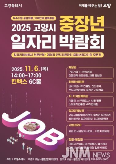 제이앤엠뉴스 | 고양특례시는 오는 11월 6일 킨텍스 제2전시장 6C홀에서 열리는‘2025 고양시 중장년 일자리박람회’에 참여할 구인기업을 모집한다고 밝혔다.