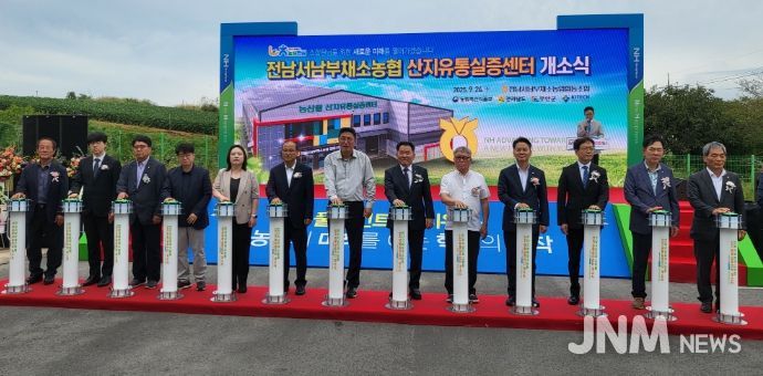 전남도는 24일 무안 현경면 전남서남부채소농협에서 농산물 풀필먼트 실증센터 개소식을 개최하고, 첨단 기술을 접목한 농산물 물류·유통 자동화 기술을 선보였다.