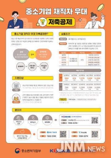 제이앤엠뉴스 | 중소벤처기업부와 IBK기업은행, 하나은행은 중소기업과 재직자로부터 많은 호응을 받고있는'중소기업 재직자 우대 저축공제(이하 우대 저축공제)'의 상품 선택의 폭을 확대하기 위해 기존 5년형 상품에 3년형 상품을 추가 출시하여 9월 25일부터 가입이 가능하다고 밝혔다.