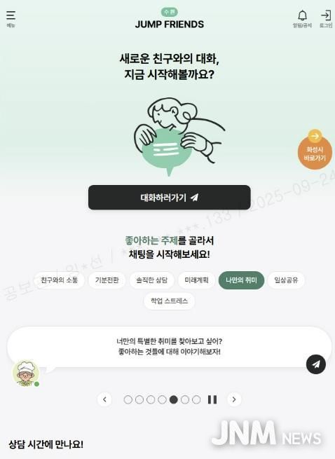제이앤엠뉴스 | 수원특례시가 생성형 AI 기반 고위험 고립 위기 청(소)년 공감상담서비스 ‘JUMP FRIENDS’(점프 프렌즈)를 22일 정식 오픈했다.