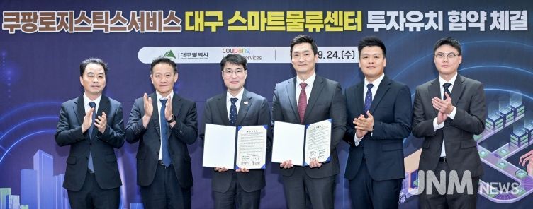 제이앤엠뉴스 | 대구광역시는 9월 24일 오후 4시 30분, 시청 동인청사 2층 상황실에서 국내 택배부문 1위 기업인 ‘쿠팡로지스틱스서비스(유)’(대표 홍용준, 이하 ‘쿠팡로지스틱스서비스’)와 수성알파시티 내 첨단 스마트물류센터 구축을 위한 투자유치 협약을 체결했다.