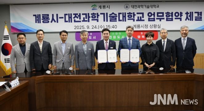제이앤엠뉴스 | 계룡시는 24일 시청 상황실에서 대전과학기술대학교(총장 이효인)와 국립군사미래박물관 건립 및 군사문화유산 보존기술 발전을 위한 업무협약을 체결했다고 밝혔다.