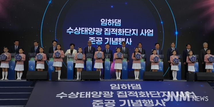 제이앤엠뉴스 | 경상북도는 25일 안동시 임하댐 공원에서 ‘국내 최초의 신재생에너지 집적화단지’이며 지자체와 지역 주민, 공공기관의 상생협력으로 만들어진 ‘임하댐 수상태양광 신재생에너지 집적화단지* 조성사업’ 준공식을 개최했다.