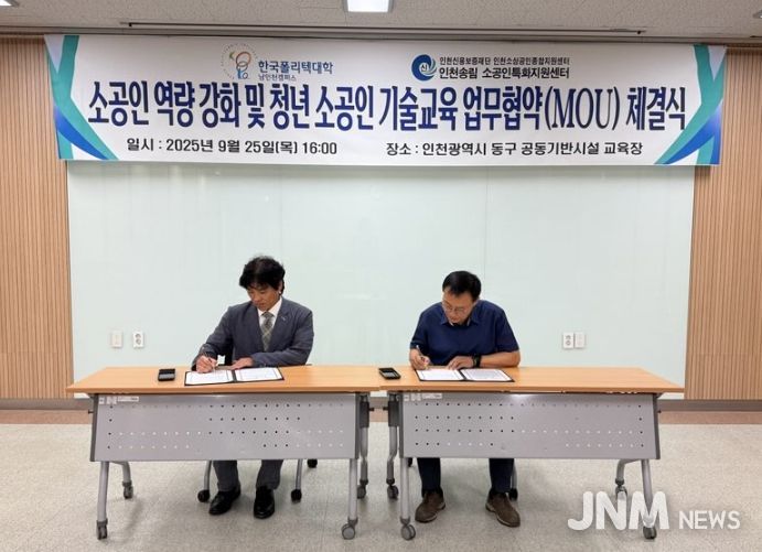 제이앤엠뉴스 | 인천광역시는 9월 25일 인천송림 소공인특화지원센터에서 ‘소공인 역량 강화 및 청년 소공인 기술교육 지원을 위한 업무협약(MOU)’을 체결했다고 밝혔다.