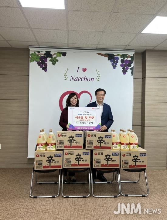 제이앤엠뉴스 | 포천도시공사는 지난 25일 내촌면 저소득 계층을 위해 150만 원 상당의 식용유 및 라면을 경기 사회복지공동모금회에 기탁하며 ‘이웃사랑 나눔릴레이 44호’에 동참했다.