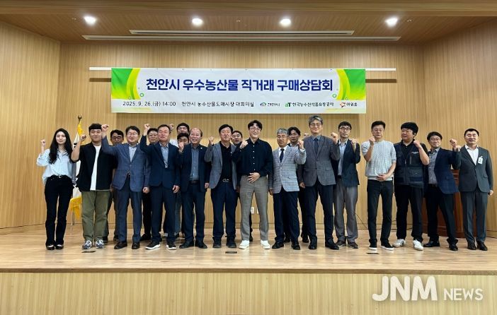 제이앤엠뉴스 | 천안시와 한국농수산식품유통공사(aT)가 26일 천안시 농수산물도매시장 대회의실에서 ‘천안시 우수농산물 직거래 구매상담회’를 개최했다.