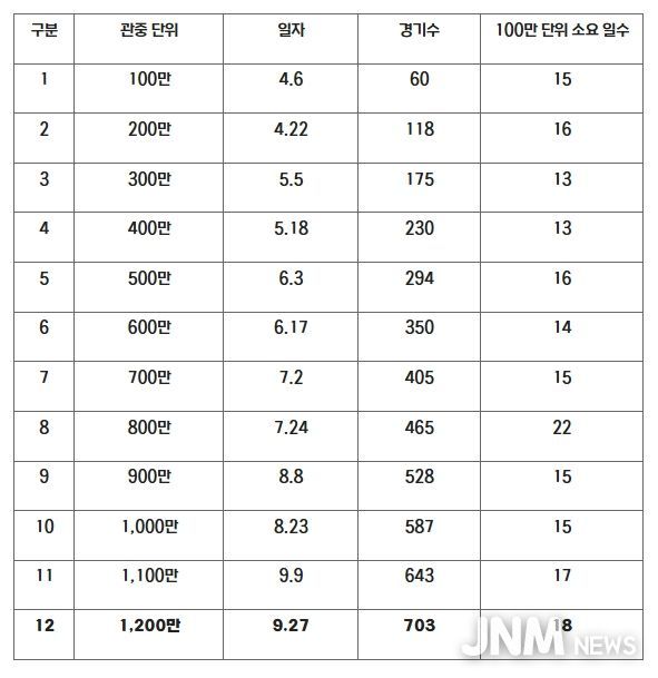 제이앤엠뉴스 | 2025 신한 SOL뱅크 KBO 리그가 1,200만 관중을 달성했다.