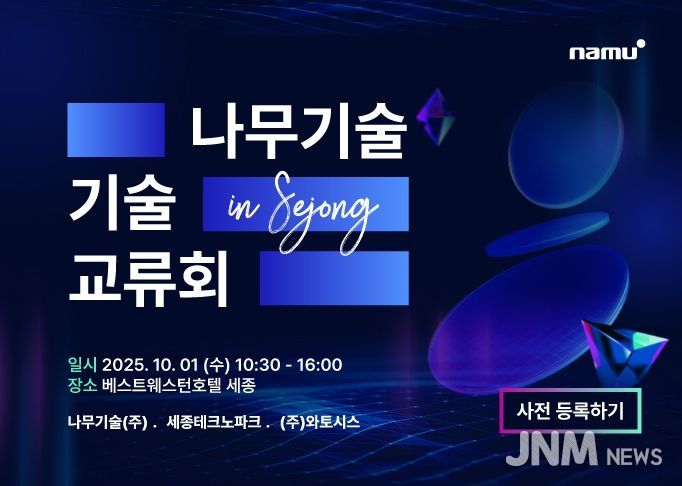 제이앤엠뉴스 | 세종테크노파크는 2025년 세종 지역혁신클러스터육성 R·D 과제의 성과 및 기반 기술 공유와 더불어 분야별 IT 신기술 교류를 위해'2025 나무기술 기술 교류회 in Sejong'을 개최한다고 26일 밝혔다.
