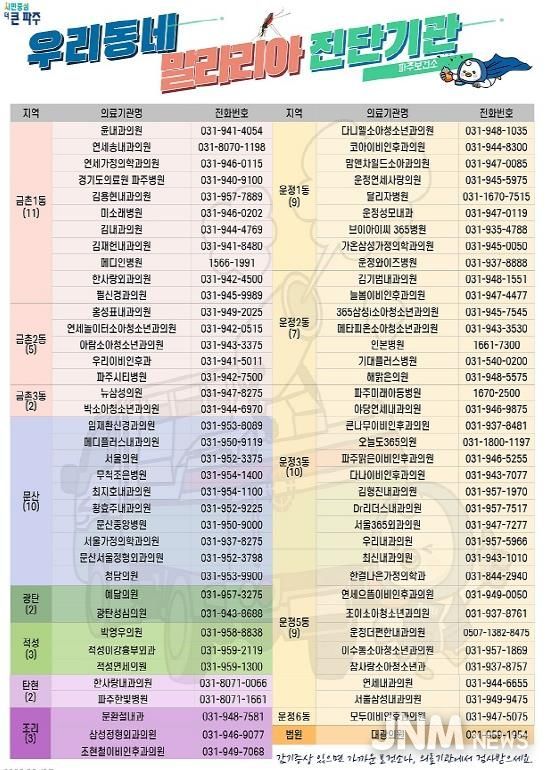 제이앤엠뉴스 | 파주시는 긴 추석 연휴 기간에도 지역 내 의료기관에 협력해 ‘우리동네 말라리아 진단기관’을 운영하며, 시민들의 말라리아 조기 진단과 예방에 만전을 기할 계획이라고 밝혔다.