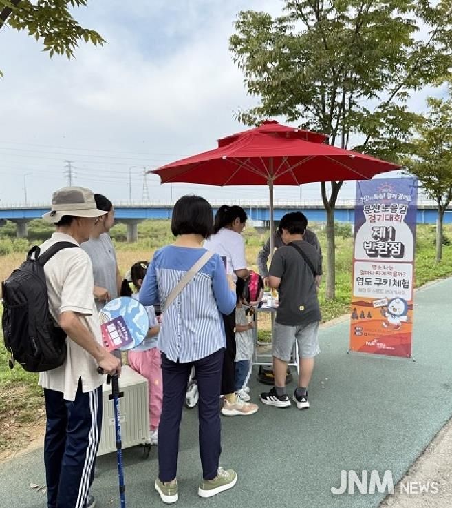 걷기대회는 문산노을길 광장에서 출발해 임월교 교차로와 문산1교 행정게시대를 반환점으로 하는 왕복 2.5km 구간으로 진행됐다. 평균 40분이 소요되는 완만한 산책로여서 남녀노소 누구나 무리 없이 참여할 수 있었다.