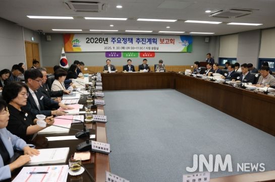 보고회 순서는 2026년도 정책 여건과 재정 전망, 시정 운영 방향, 핵심 정책과제에 대한 전략기획감사실장의 총괄 브리핑 후 부서별 신규 시책과 주요 정책에 대한 업무 보고가 진행됐다.