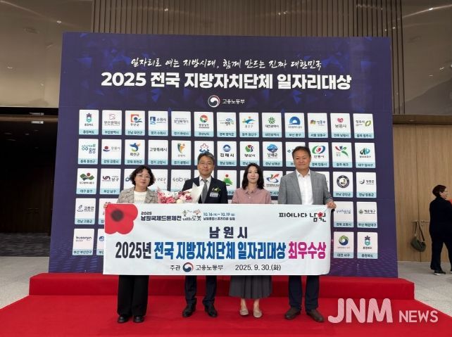 제이앤엠뉴스 | 남원시는 9월 30일 고용노동부 주관으로 청주 오스코에서 열린 ‘2025년 전국 지방자치단체 일자리대상’에서 최우수상을 수상했다고 밝혔다.