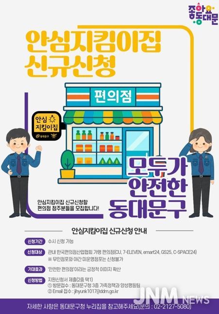 제이앤엠뉴스 | 서울 동대문구는 여성·아동 등 범죄취약계층을 보호하기 위해 안심지킴이집 신규 지정 확대 사업을 추진한다고 밝혔다.
