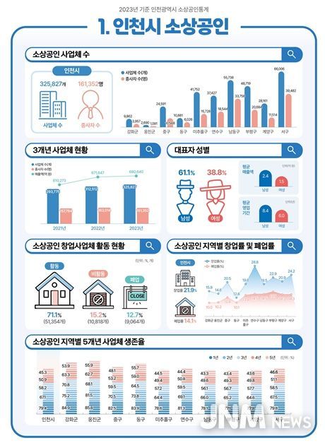 제이앤엠뉴스 | 인천광역시는 '2023년 기준 인천 소상공인통계'결과를 인천시 누리집 인천데이터포털을 통해 공표했다고 밝혔다.