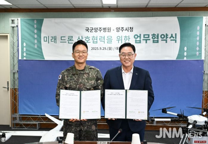 제이앤엠뉴스 | 양주시가 지난 29일 국군양주병원과 손잡고 ‘드론산업 발전 및 활용을 위한 업무협약’을 체결했다.